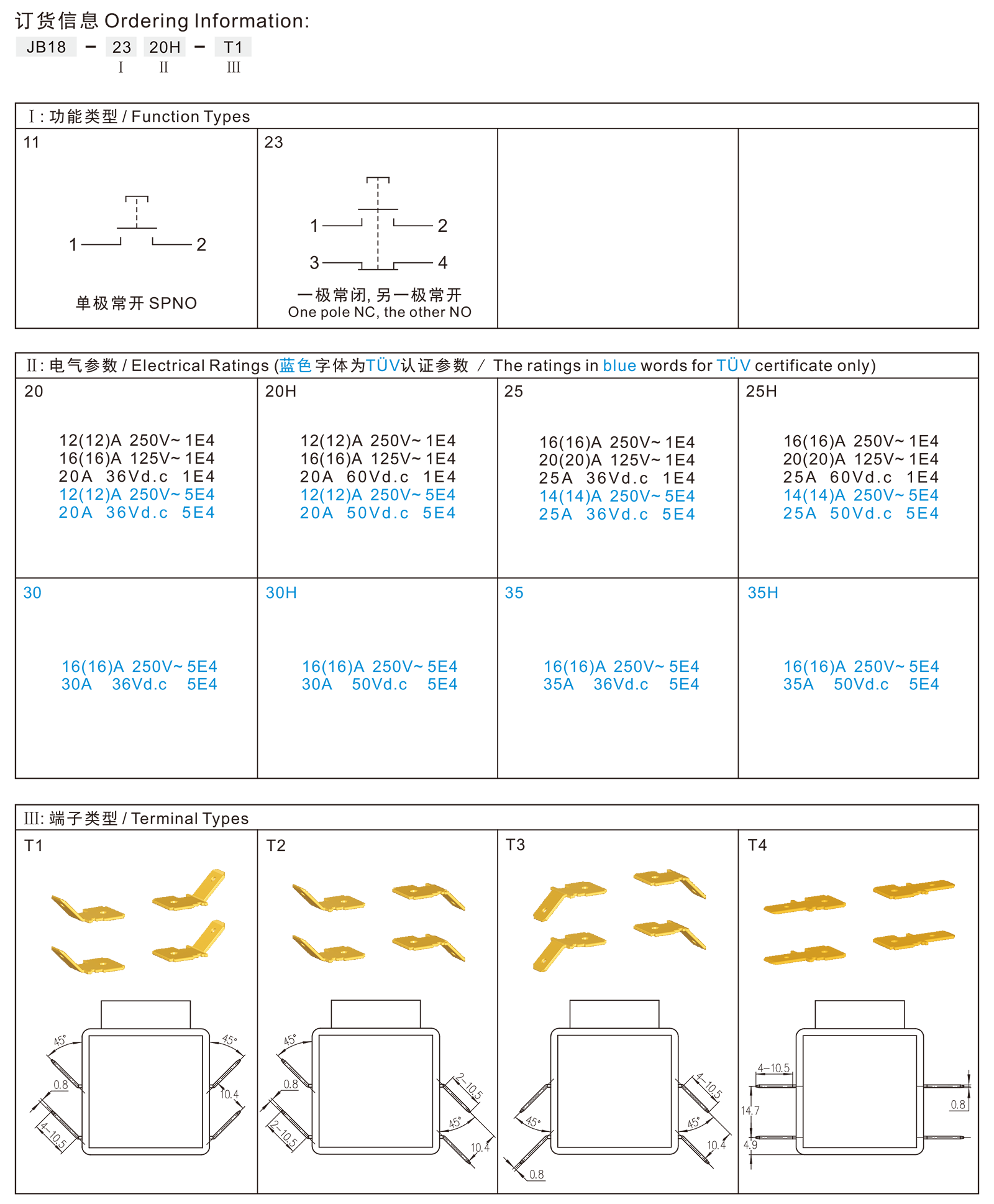 →一极常开,另一极常闭 One Pole Normally Open, the other Normally Close