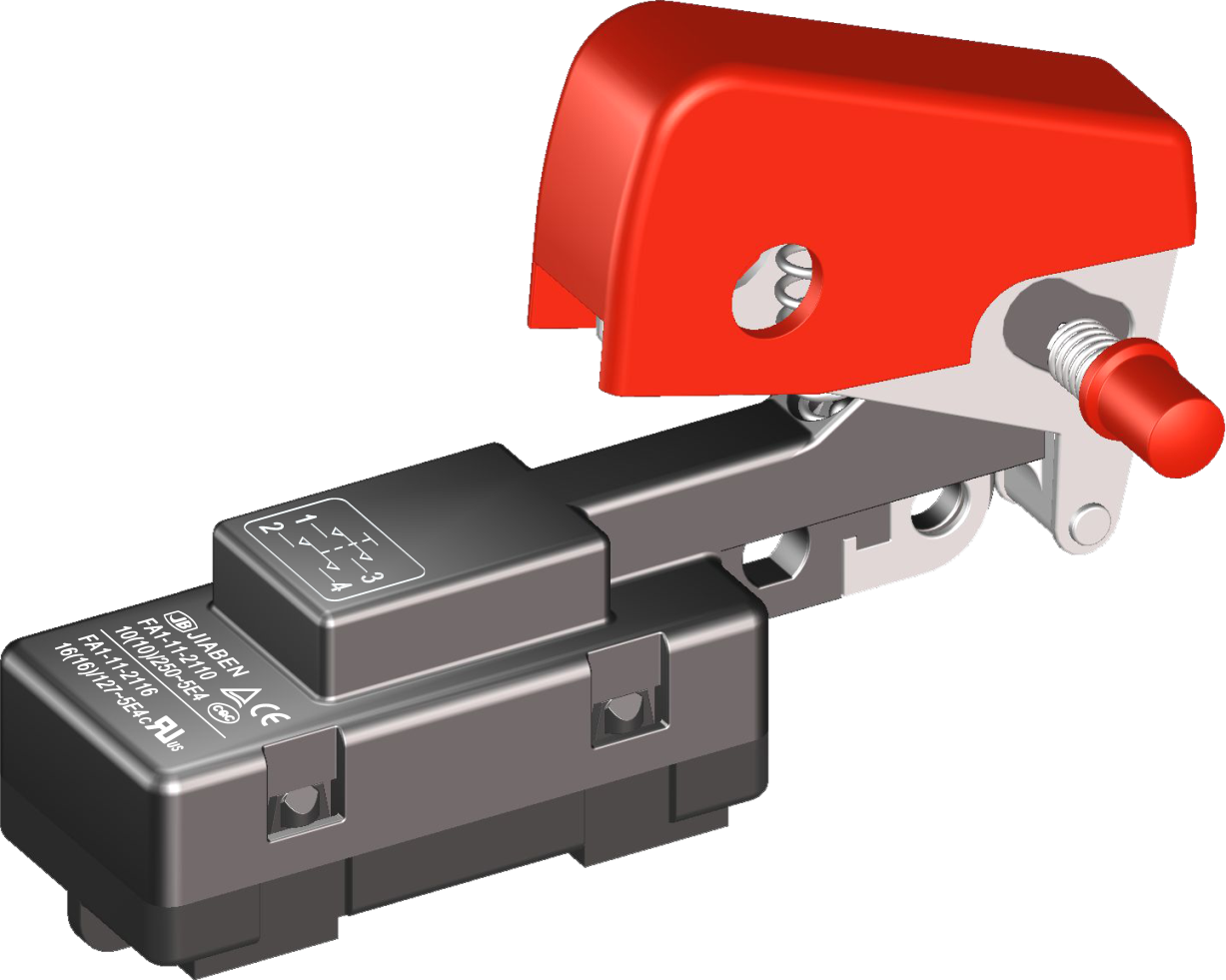 FA1-10C, FA1-11 series are general type high rated trigger switches, integrated dustproofwith snap-action structure, for used in high rated bench-top, portable power-tools and gardening tools such as Cut-off Machines, Miter Saws, 150mm, 180mm and 230mm Large Angle Grinders, Polishers, Circular Saws, Rotary Hammers, Demolition Hammers, Electric Chain Saws, etc.