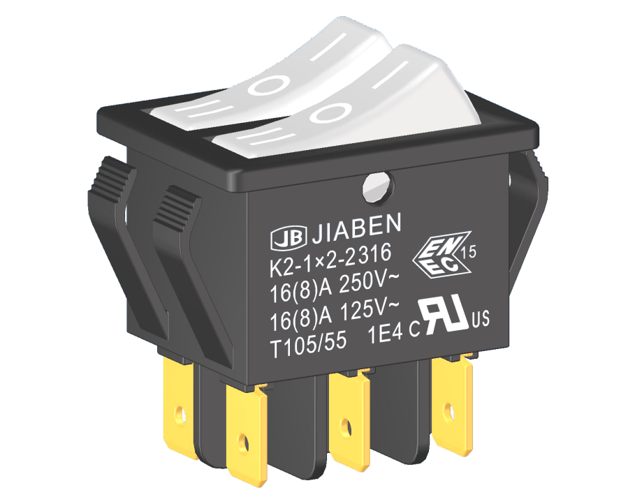 ◆K2-1x2系列是一款标准型的跷板开关,也通称船型开关、波形开关等,用途极广,广泛应用于各类家用电器及办公设备,如:电扇、饮水机、取暖器等。