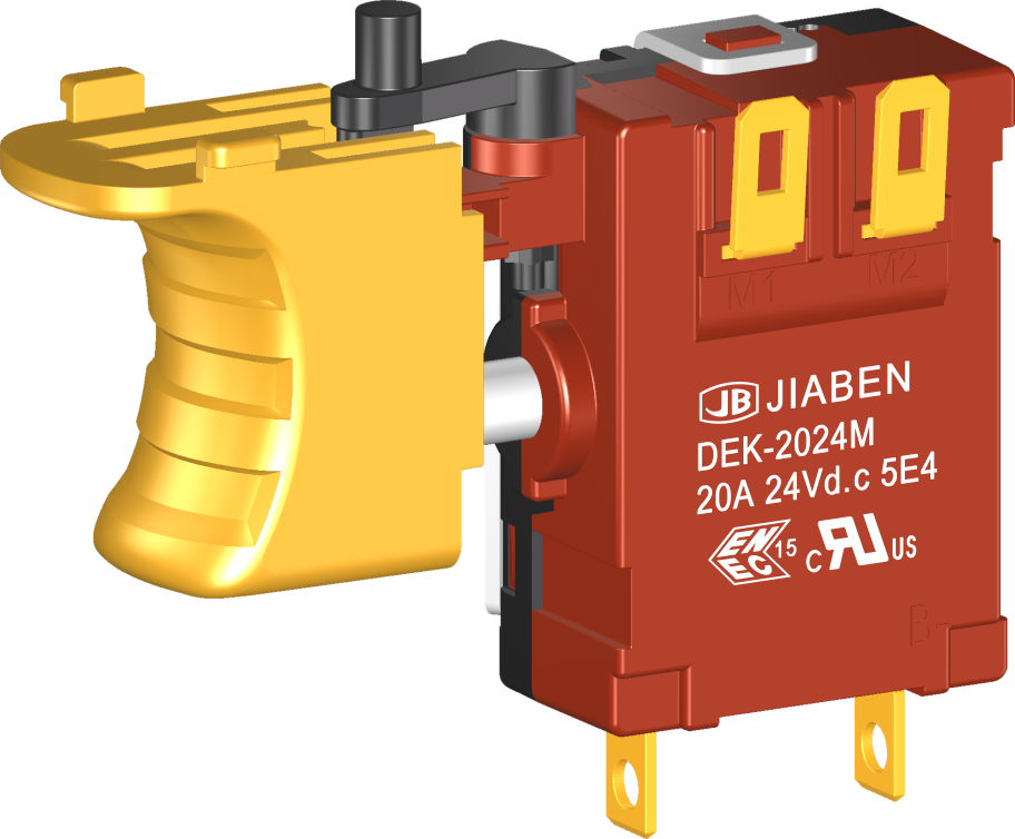 我司主要产品:微动开关、跷板开关、按钮开关、扳机开关、调速开关和电位器开关等各类交、直流器具开关和各类交、直流线路板模块,应用于交、直流电动工具、电动园林工具、清洁器具、家用电器和小型机床等行业。 Our company main products: micro switch, rocker switch, push button switch, trigger switch, speed switch and potentiometer switch and other kinds of a