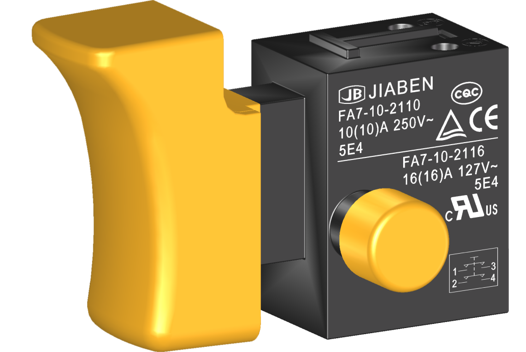 我司主要产品:微动开关、跷板开关、按钮开关、扳机开关、调速开关和电位器开关等各类交、直流器具开关和各类交、直流线路板模块,应用于交、直流电动工具、电动园林工具、清洁器具、家用电器和小型机床等行业。 Our company main products: micro switch, rocker switch, push button switch, trigger switch, speed switch and potentiometer switch and other kinds of a